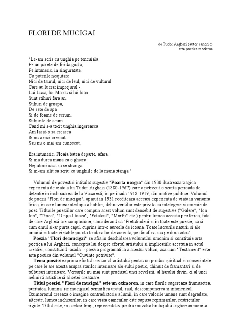 Arta Poetica Flori De Mucigai De Tudor Arghezi