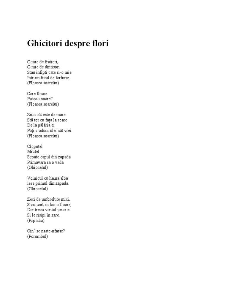 Ghicitori Despre Flori Ghicitori Proverbe Zicatori