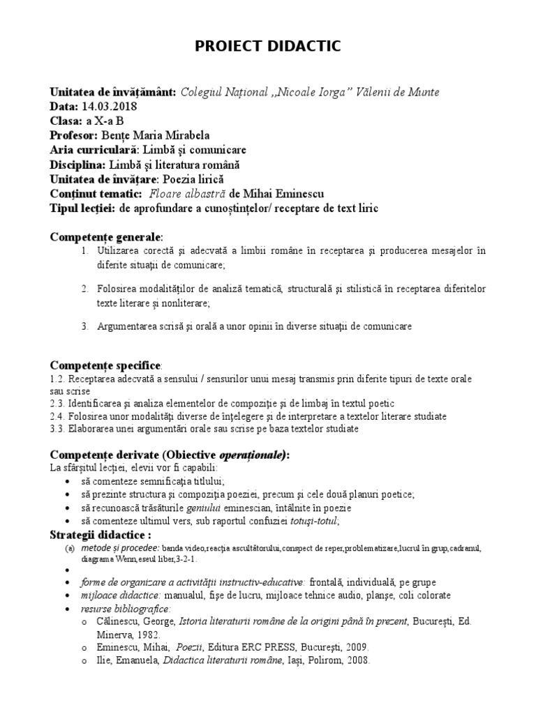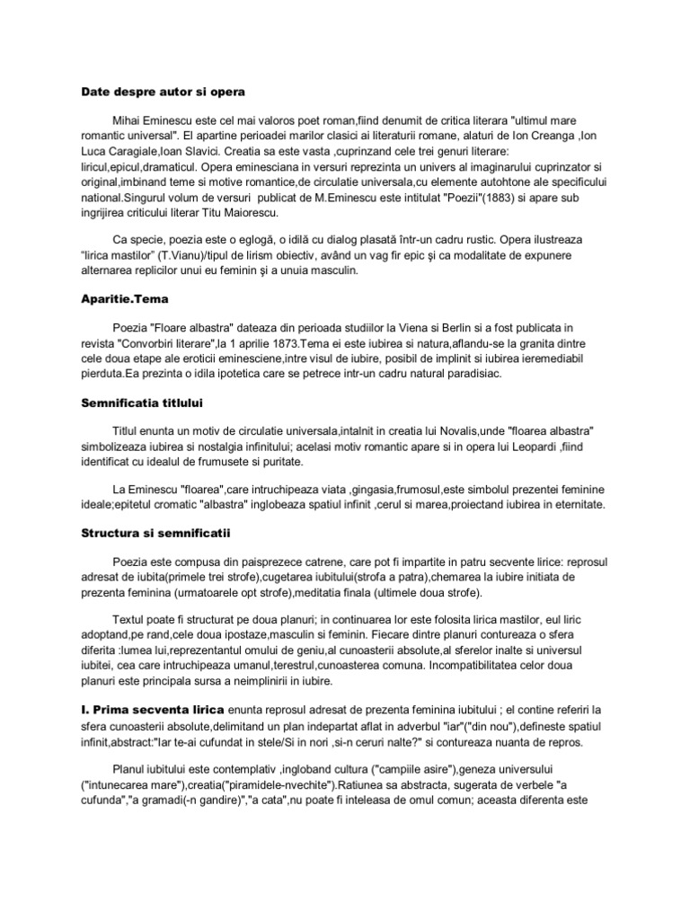 Doc Poezia Romantică Floare Albastră De Mihai Eminescu Andreea