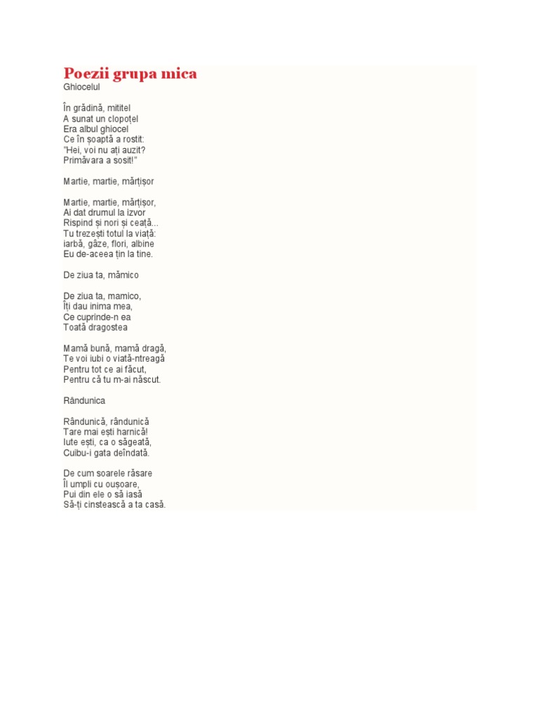 Poezii Pt Grupa Mica