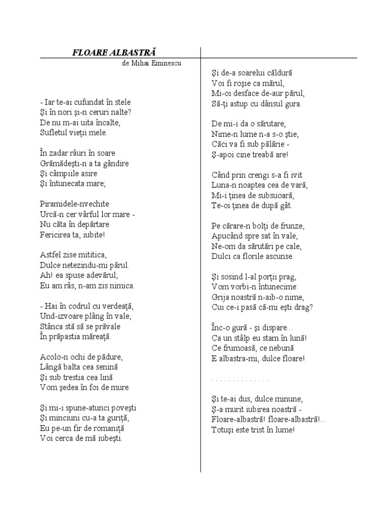 Argumentare Opera Lirica Floarea Albastra De Mihai Eminescu Dau
