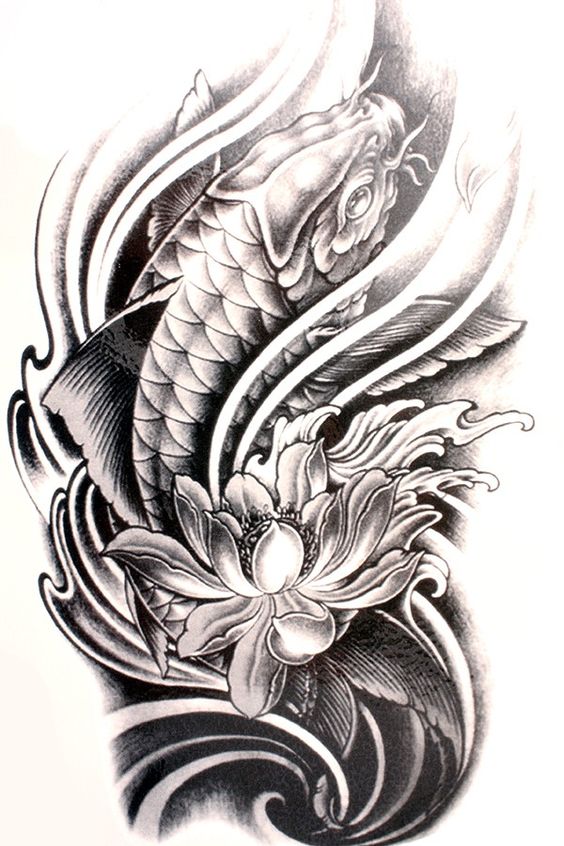 Pez Koi Flor De Loto Tatuaje Pez Koi Pez Koi Dibujo Tatuaje