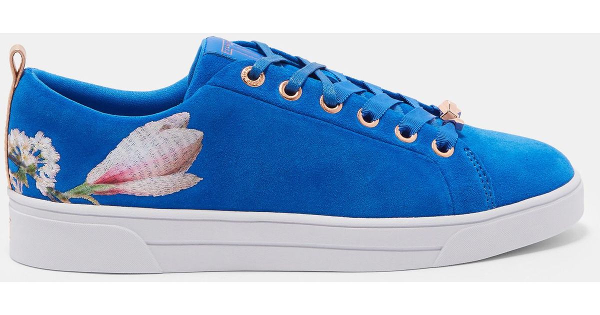 Ted Baker Harmony Floral Suede Trainers In Bright Blue Blue For